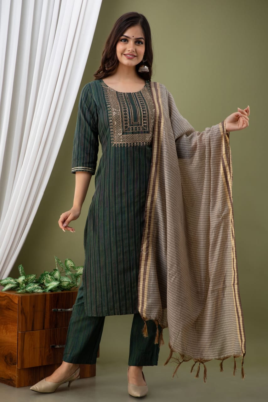 Shri Balaji Emporium Presents Heavy Sequin Work Added Cotton Fabric Fancy Kurti With Pent And Dupatta Collection