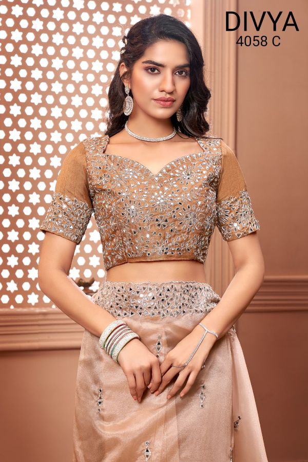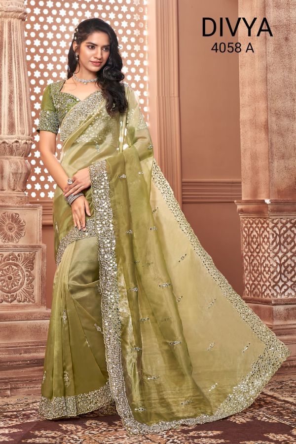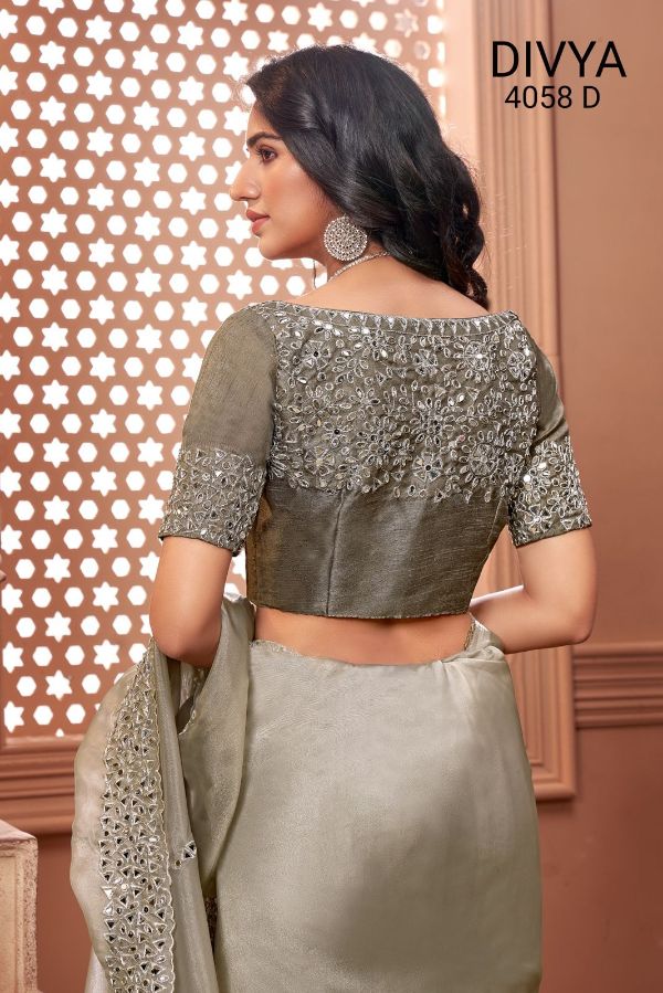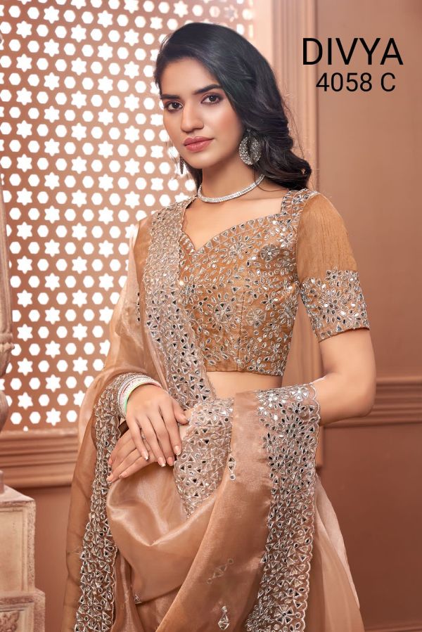 Df Presents Mirror Vol-2 4058a-4058d Series Organza With Mirror Embroidery Work Saree Collection
