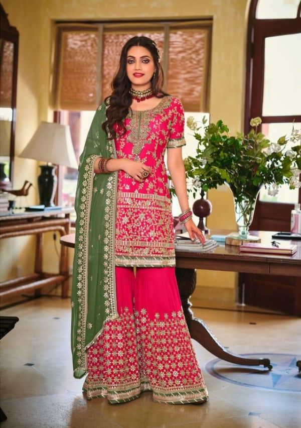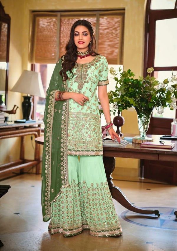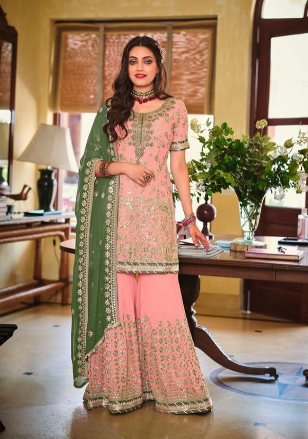 Plazo - foux georgette with emboidery plazo front & back work ) "