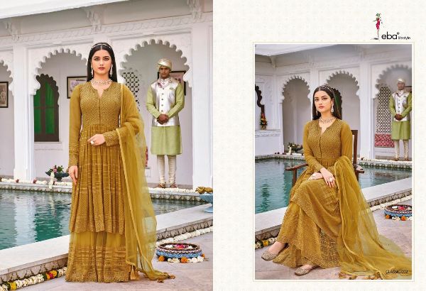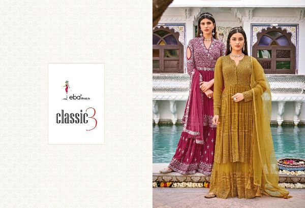 Eba Lifestyle Presents Classic 3 001 - 004 Series Pure Georgette With Chinon Embroidery Work Salwar Kameez Collection