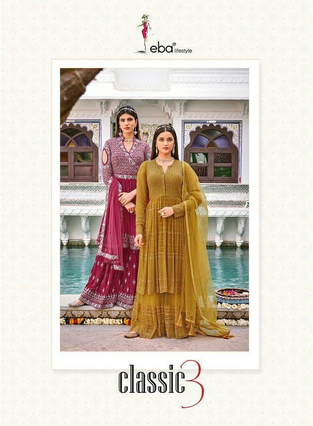 Eba Lifestyle Presents Classic 3 001-004 Series Pure Georgette With Chinon Embroidery Work Salwar Kameez Collection