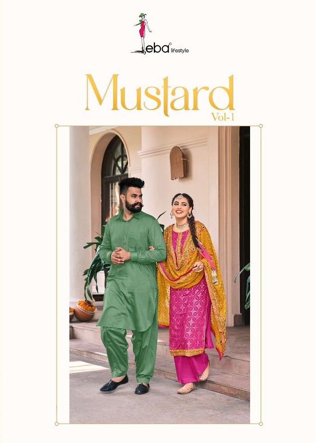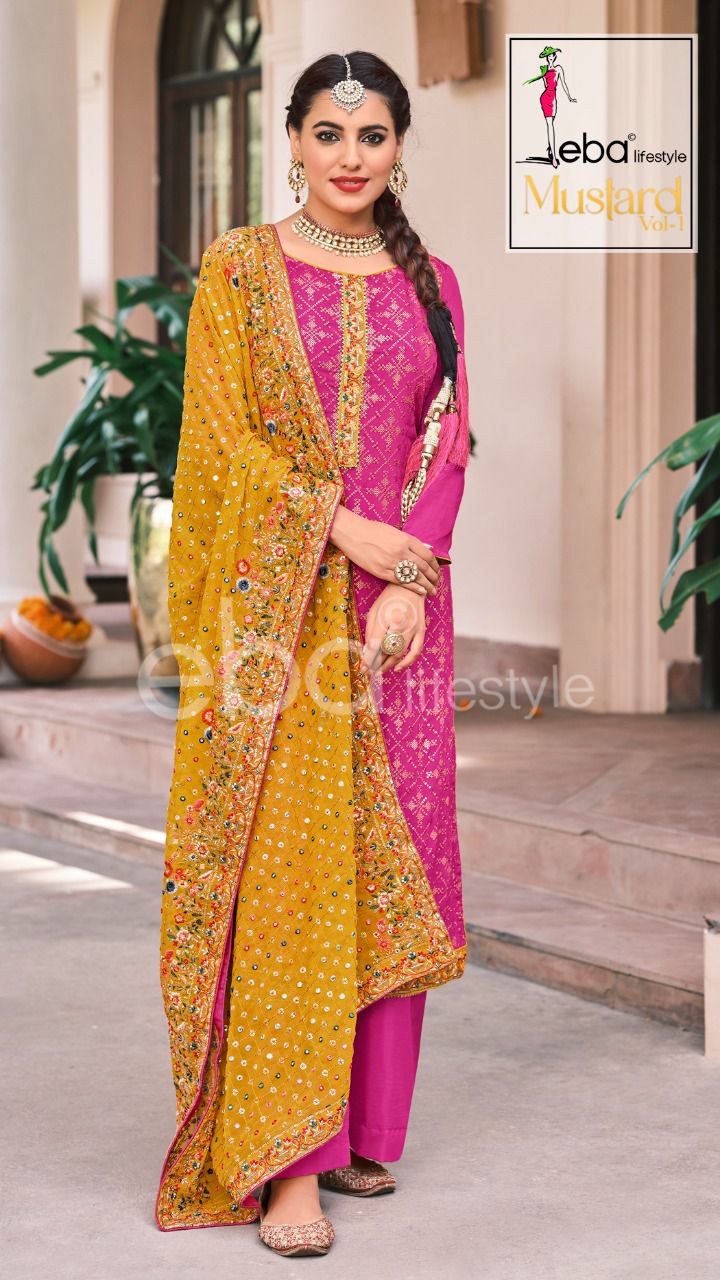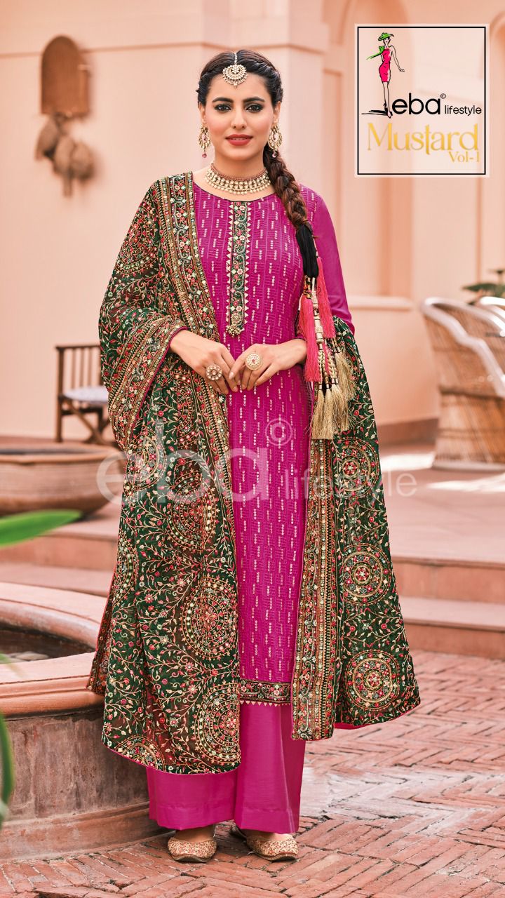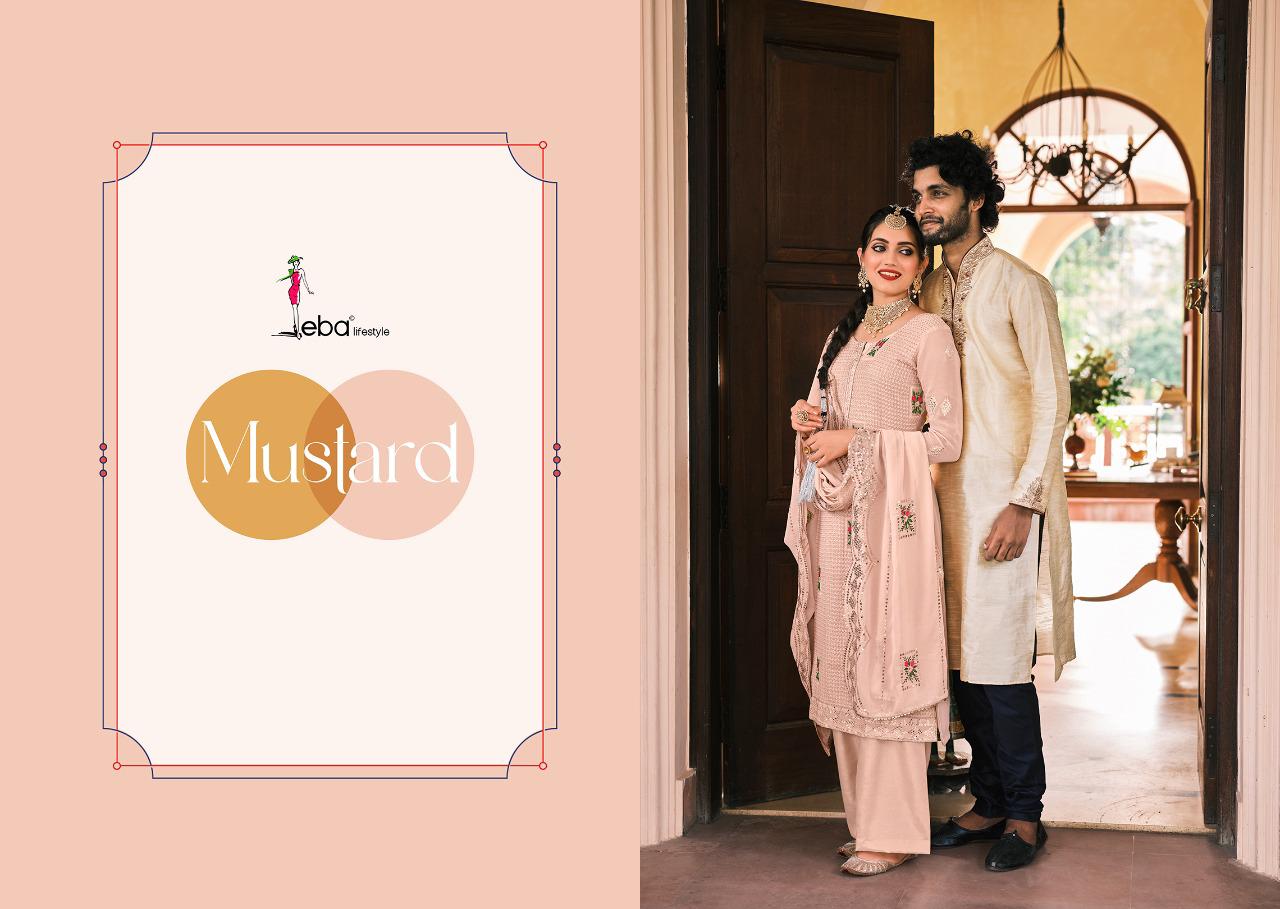 Eba Lifestyle Presents Mustard Vol-1 1336 - 1339 Series Foux Georgette With Heavy Embroidery Work Fancy Occasion Wear Salwar Suit Collection