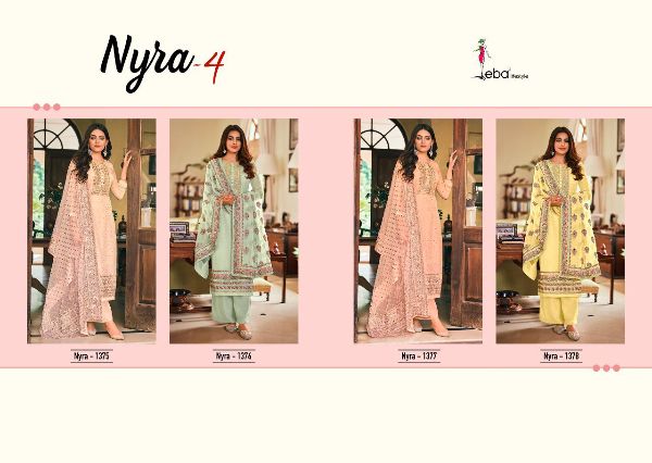 Eba Lifestyle Presents Nyra-4 1375-1378 Series Pure Viscose Organza With Heavy Embroidery Salwar Suite Collection