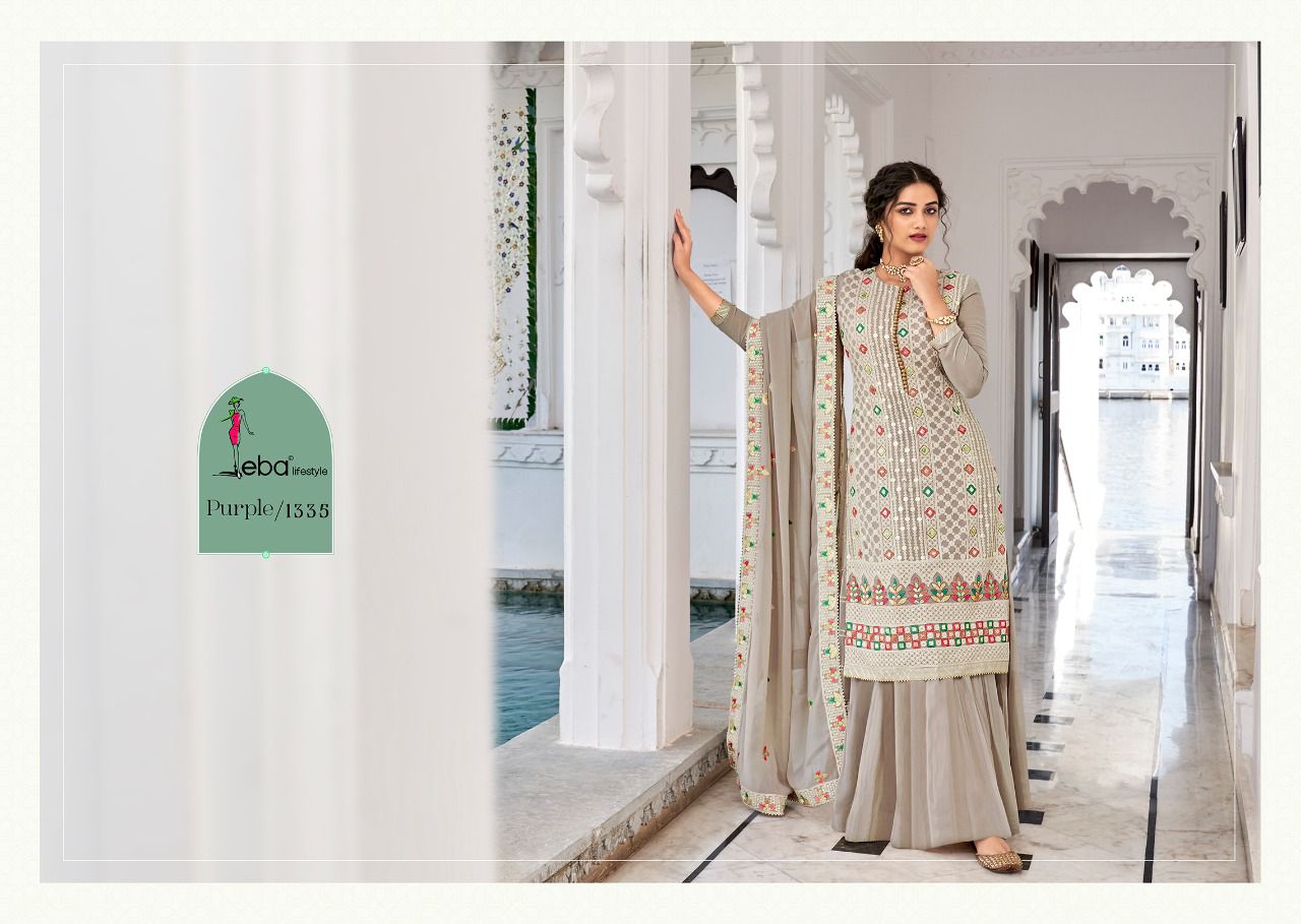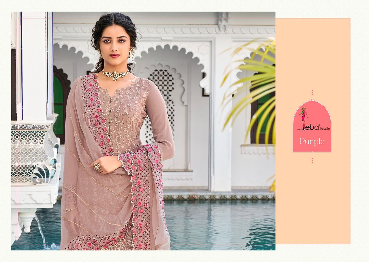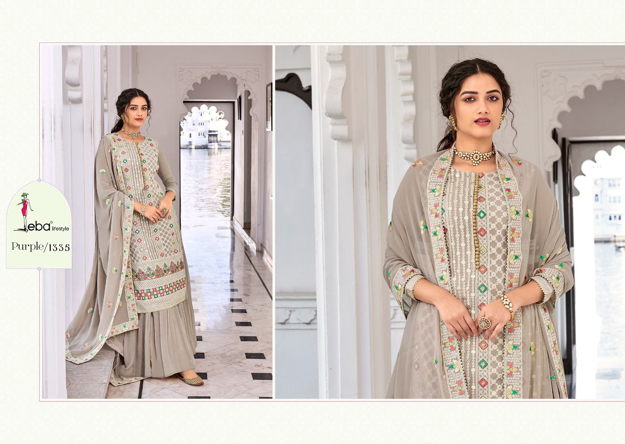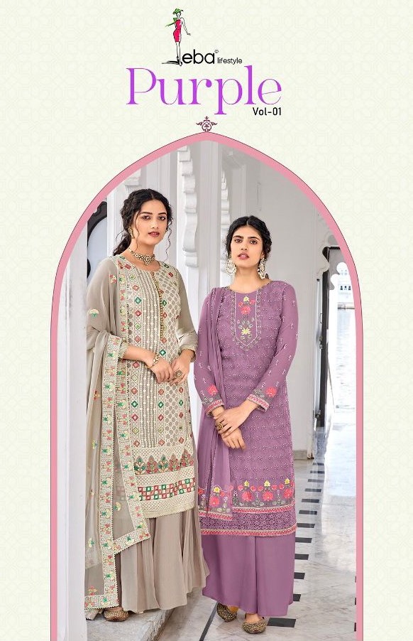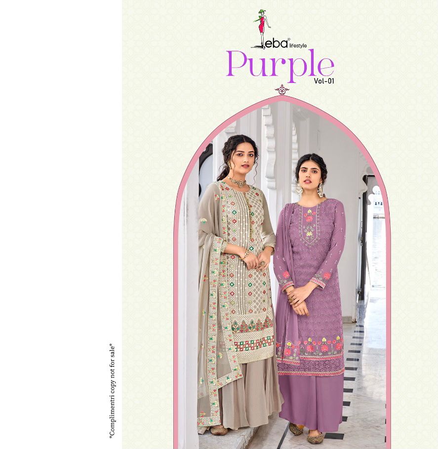 Eba Lifestyle Presents Purple Vol-1 1332 - 1335 Series Foux Georgette With Heavy Embroidery Fancy Party Wear Salwar Suit Collection