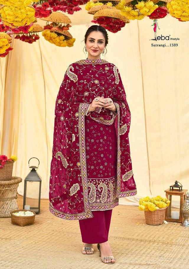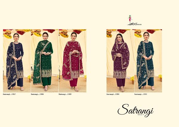Eba Lifestyle Presents Satrangi Vol - 2 1387-1391 Series Foux With Hevey Embroidery Work Salwar Suit Collection