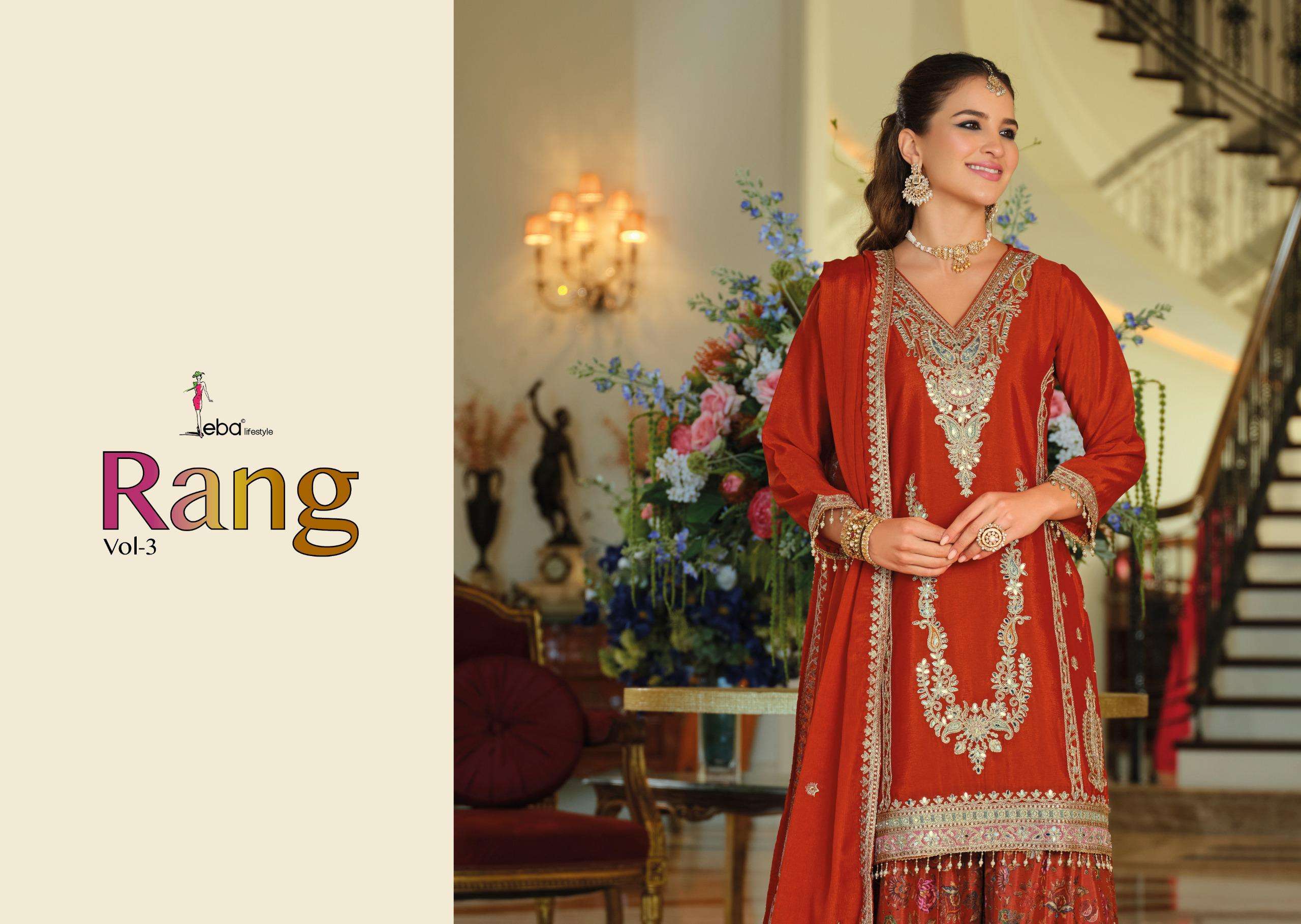 | Catalogue: | Eba Rang Vol 3 Ready to Wear Beautiful Chinon Embroidery work Salwar Suit |