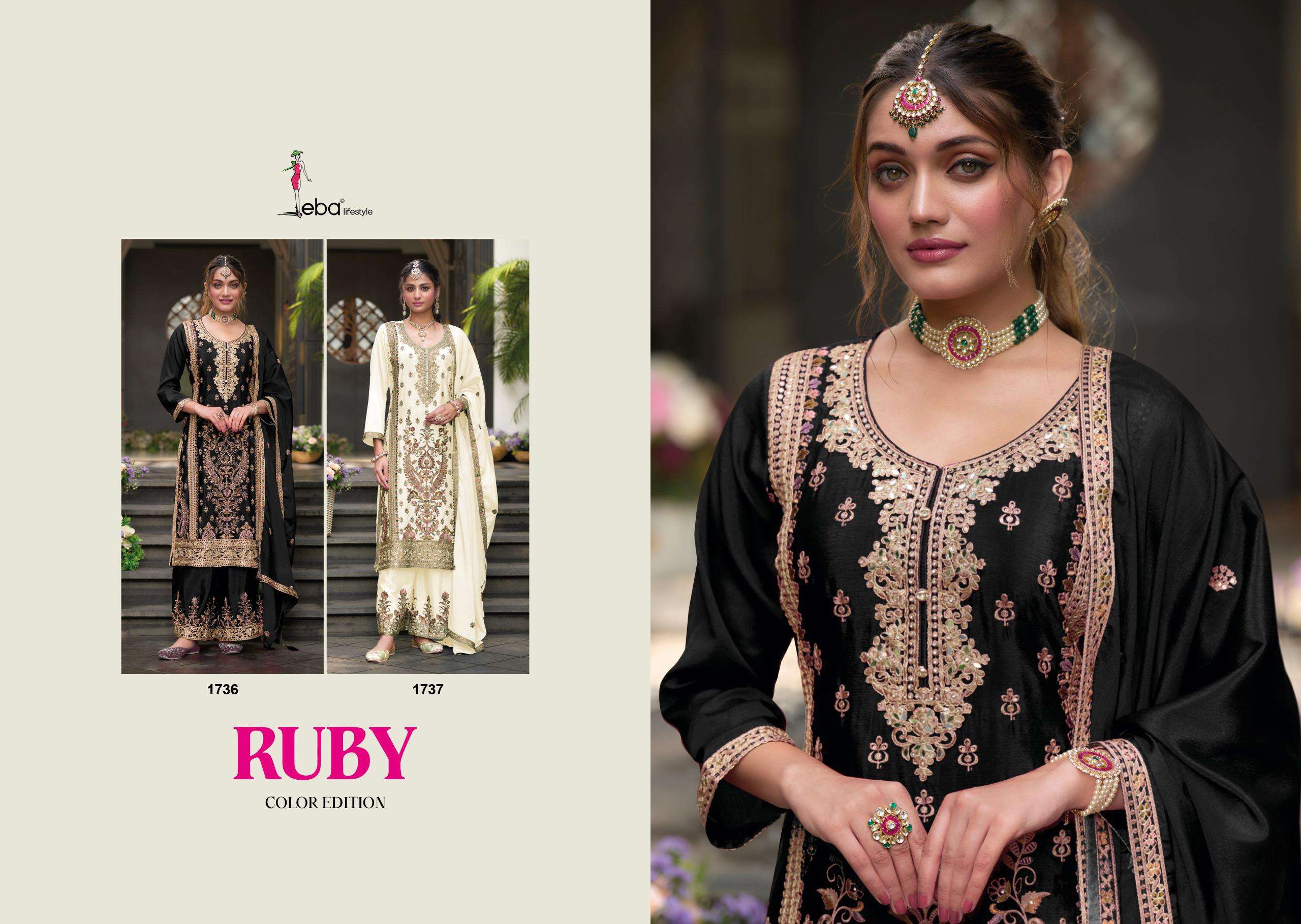 | Catalogue: | Eba Ruby Black & White Ready to Wear Chinon Embroidery work Salwar Suit |