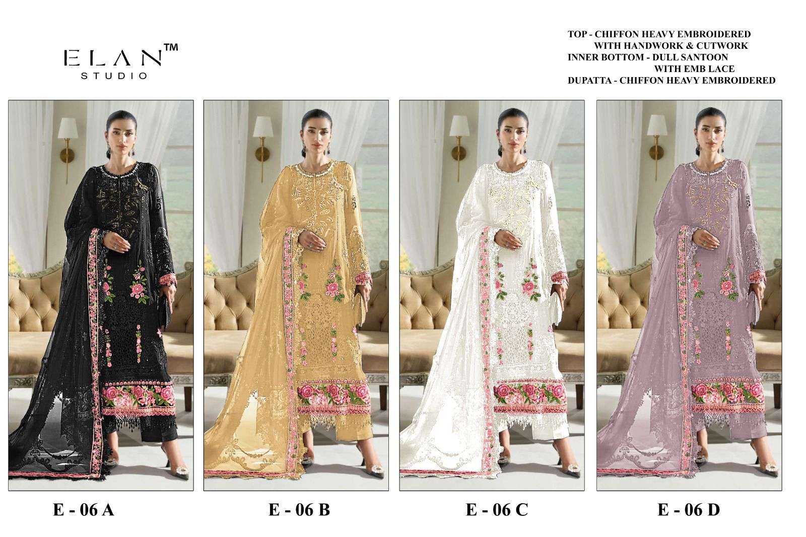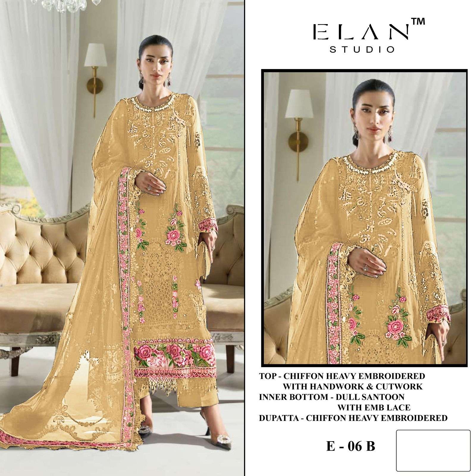 | Catalogue: | Elan Studio E 06 Chiffon Embroidery & Handwork Pakistani Suit |