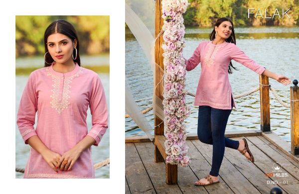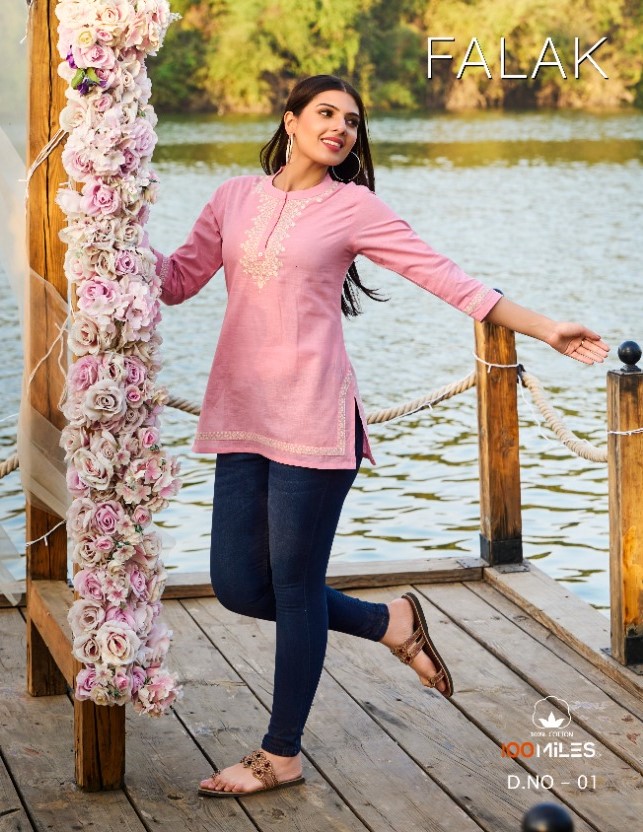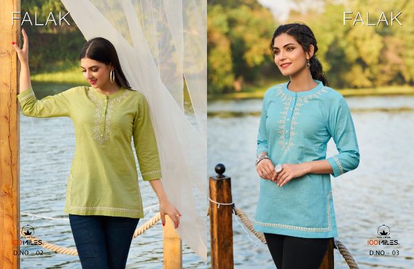 Falak Presents Dn-01-04 Series Pure Cotton Slub Tops With Fancy Lucknowi Embroidery Work