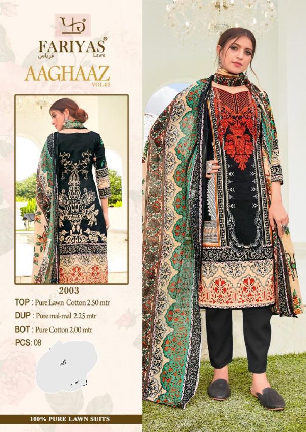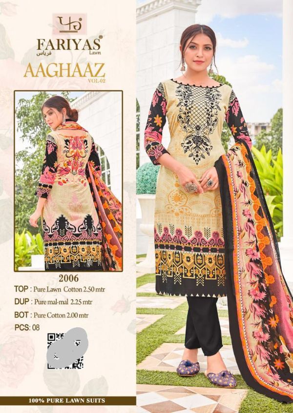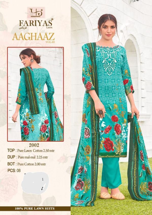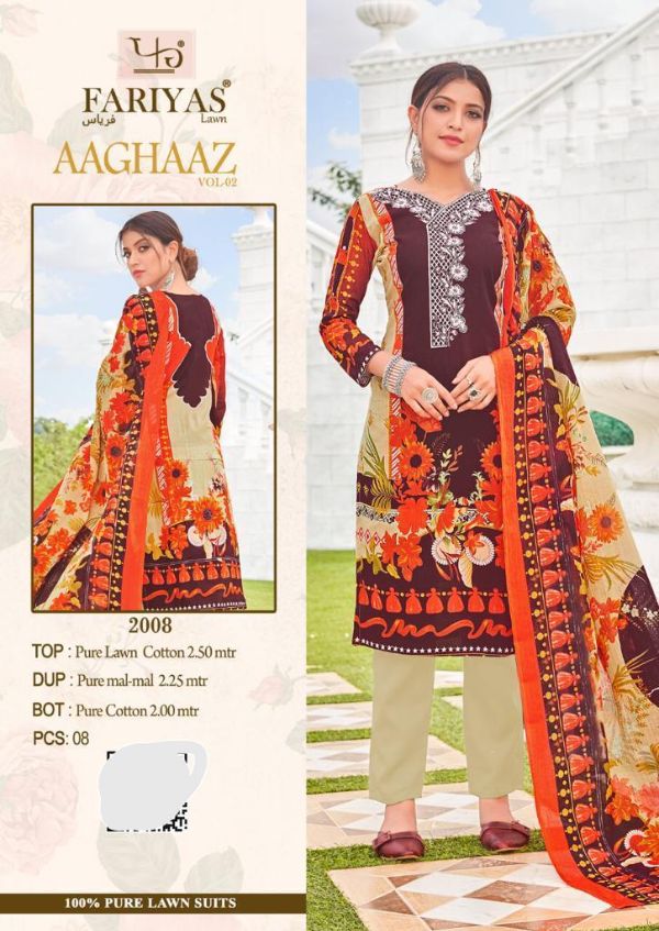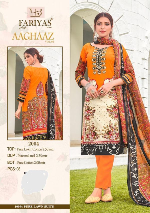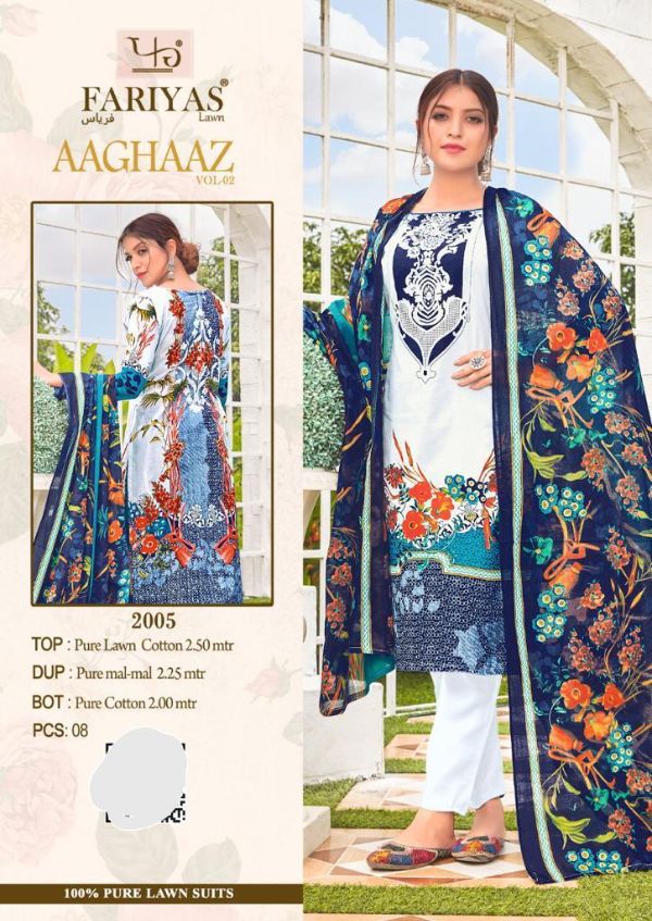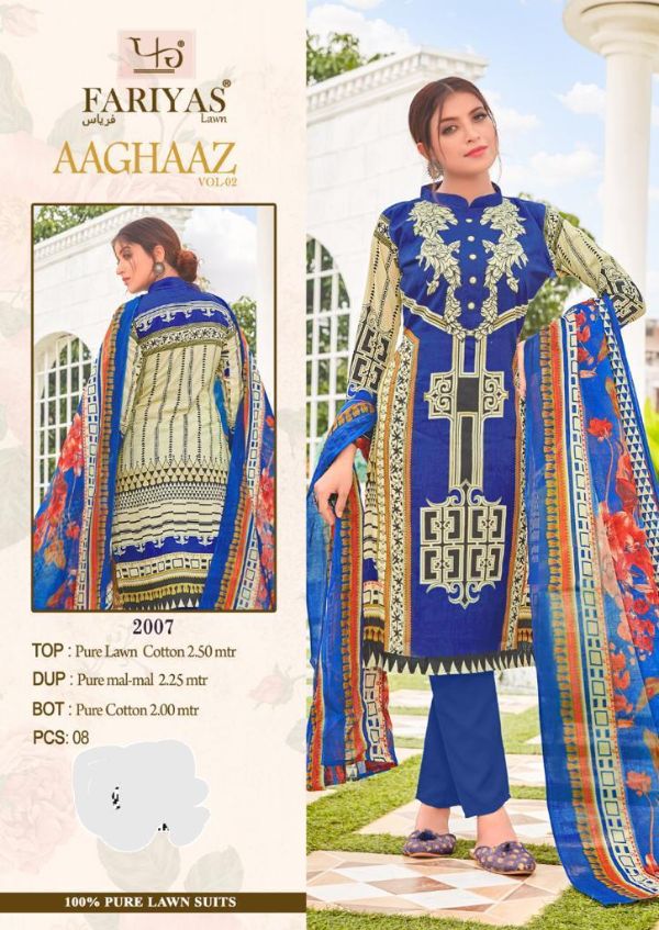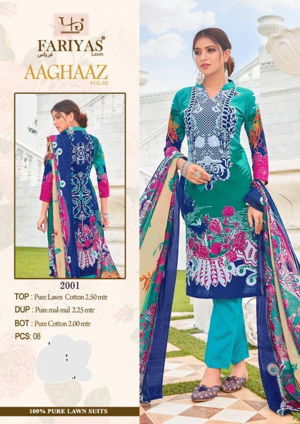 Fariyas Luxury Lawn Presents Aaghaaz Vol-02 1001-1008 Series Pure Lawn Cotton Pakistani Collection