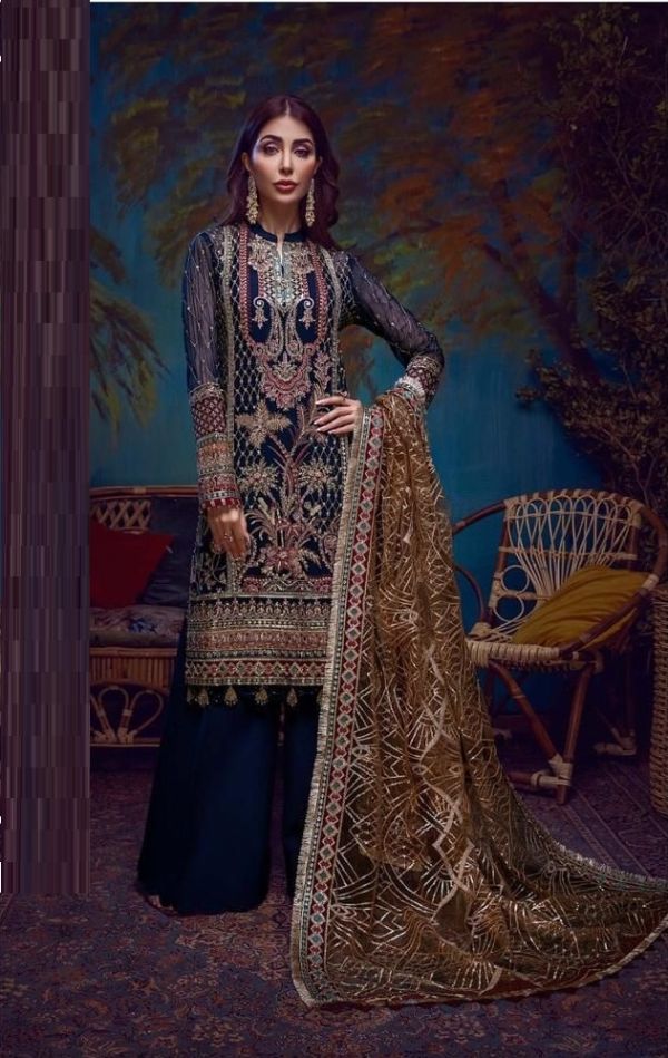 Latest Designer pakistani Collection. Exclusive with Foil & Thread Embroidery Work gives a Fashionable Look, High sensed style and luxury makes you ready for envious glazes and very rich & Royal in the Party, Function, Event etc.