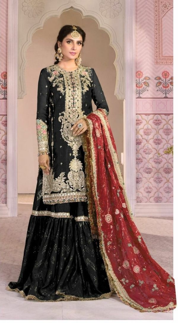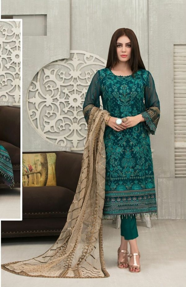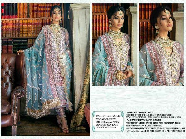 Latest Designer pakistani Collection. Exclusive with Foil & Thread Embroidery Work gives a Fashionable Look, High sensed style and luxury makes you ready for envious glazes and very rich & Royal in the Party, Function, Event etc.