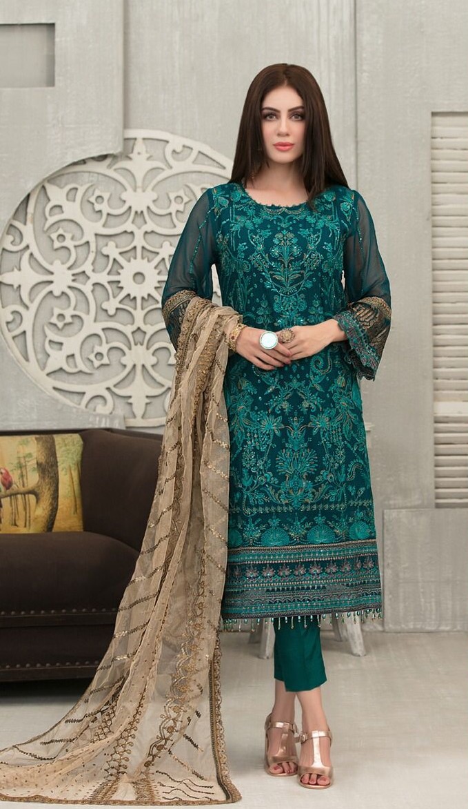 Latest Designer pakistani suit Collection. Exclusive with Foil & Thread Embroidery Work gives a Fashionable Look, High sensed style and luxury makes you ready for envious glazes and very rich & Royal in the Party, Function, Event etc.