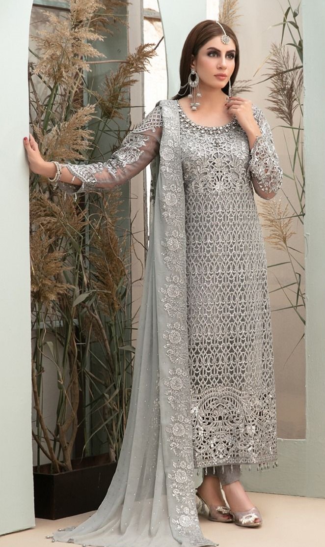 Latest Designer pakistani suit Collection. Exclusive with Foil & Thread Embroidery Work gives a Fashionable Look, High sensed style and luxury makes you ready for envious glazes and very rich & Royal in the Party, Function, Event etc.