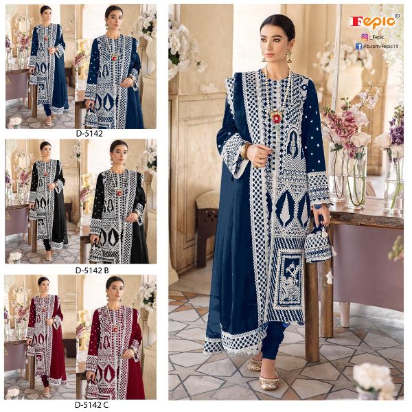 Fepic Presents Rosemeen D-5142 - D-5142c Series Beautiful Georgette With Heavy Embroidery Work Fancy Pakistani Suits Collection