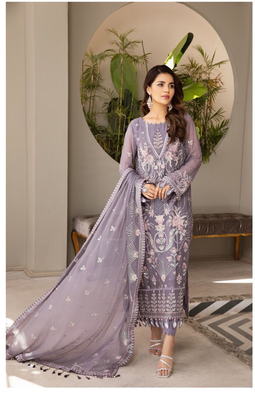 Latest Designer pakistani suits Collection. Exclusive with Foil & Thread Embroidery Work gives a Fashionable Look, High sensed style and luxury makes you ready for envious glazes and very rich & Royal in the Party, Function, Event etc.