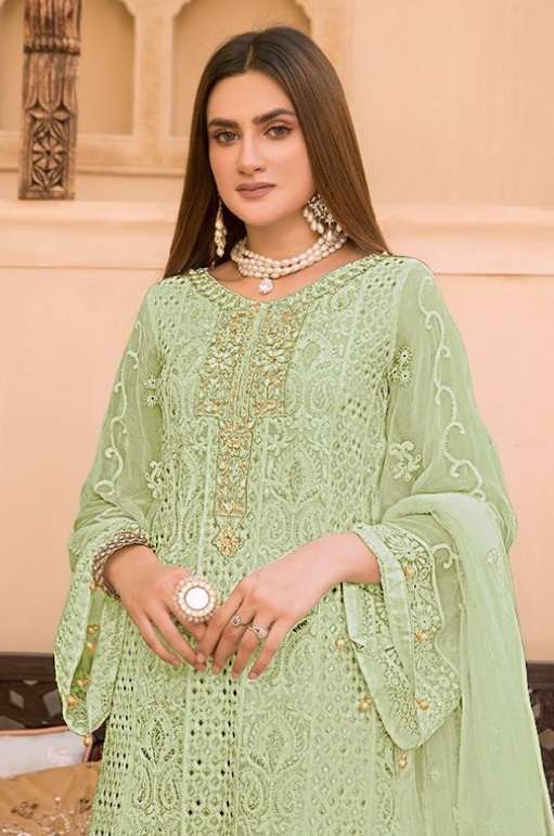 • FABRIC: TOP: Faux Georgette || BOTTOM/INNER: Santoon || DUPATTA: Net