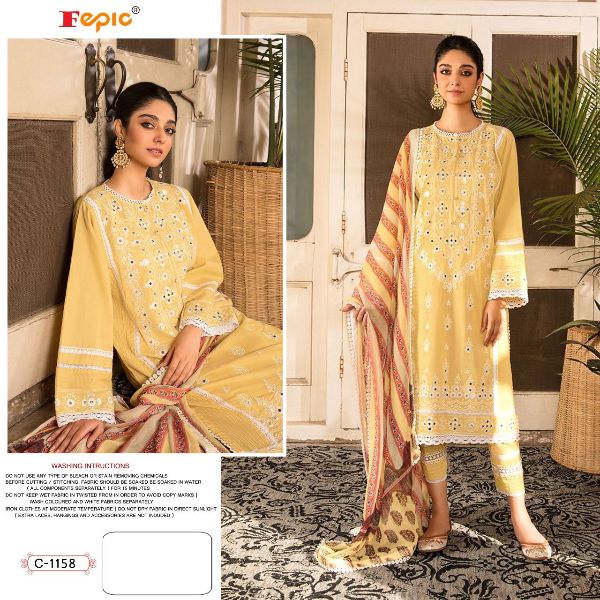 Fepic Presents Rosemmen D-1158 Pure Cotton With Embroidery Work Pakistani Suit Collection
