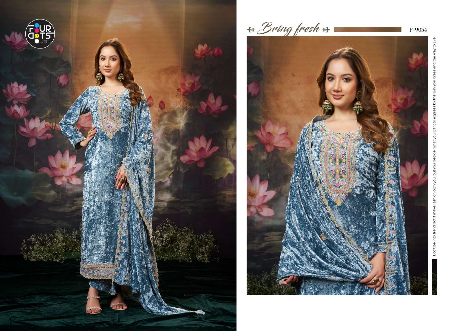 | Catalogue: | Fourdots PANCHMUKH Pure Makhmal Velvet Suit with Embroidery Work |