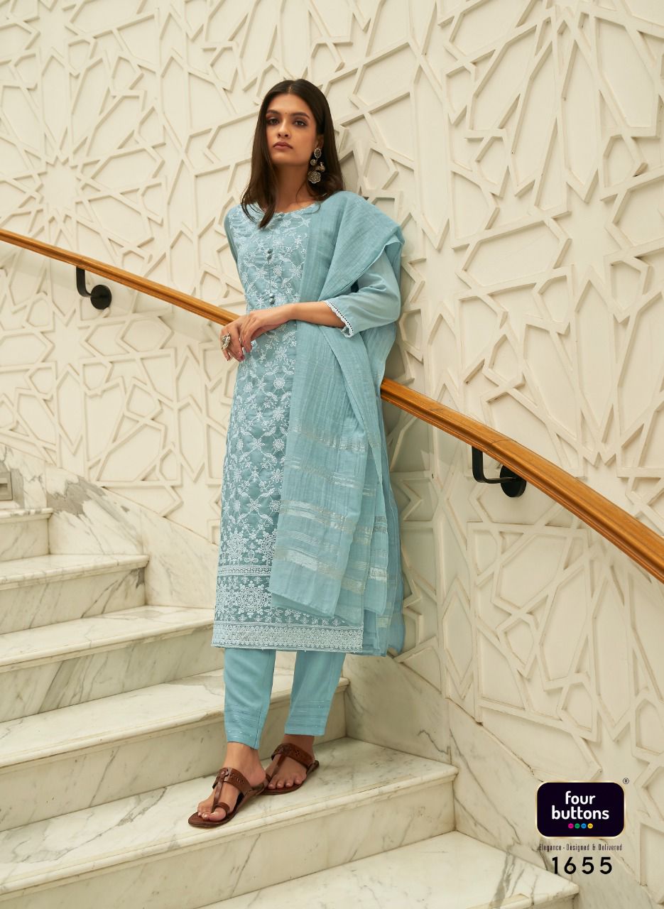 Fourdots Presents Pearl Vol-4 1651 - 1656 Series Pure Chanderi Viscose With Lakhnavi Work Fancy Casual Wear Salwar Kameez Collection