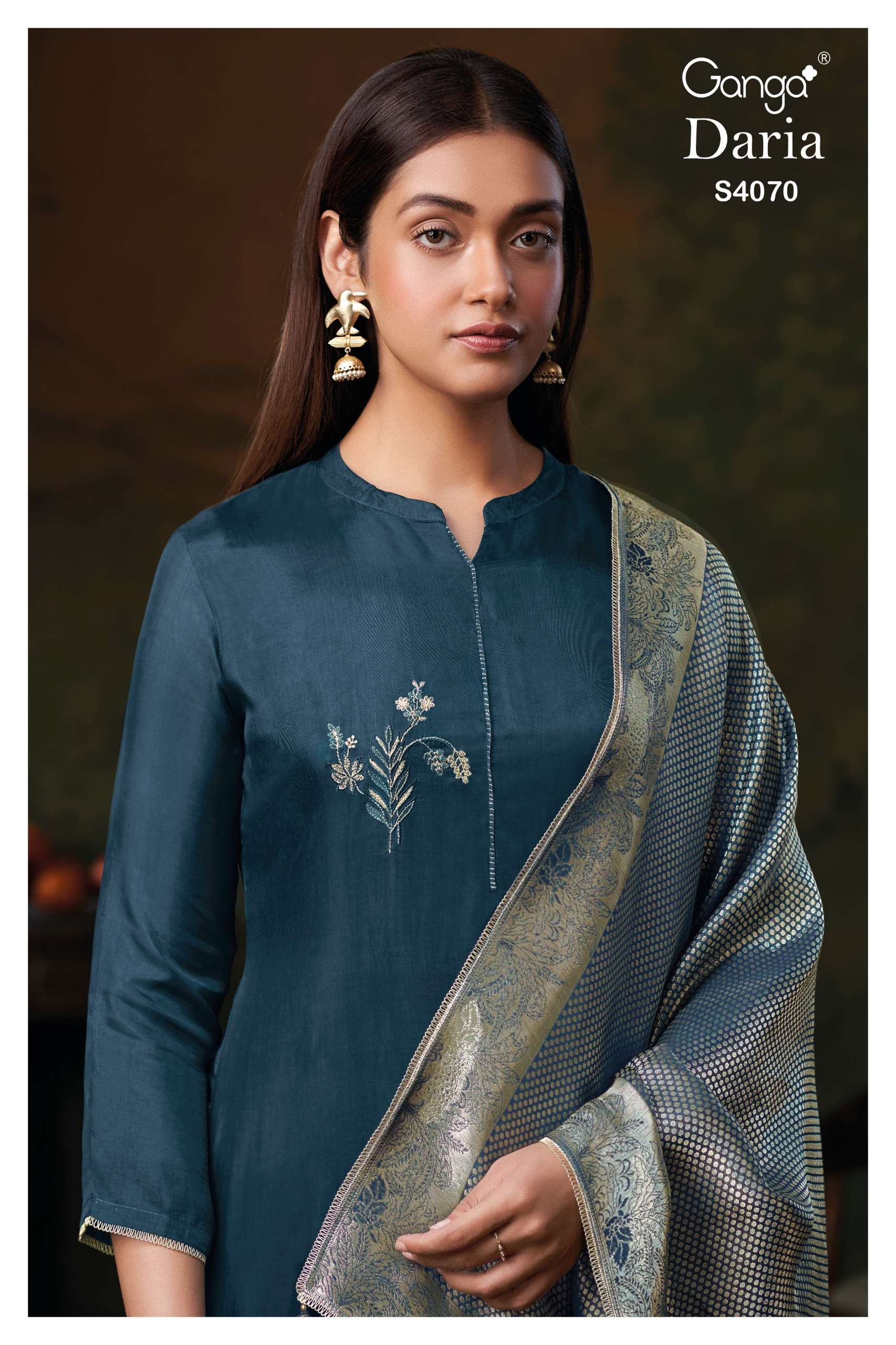 | Catalogue: | GANGA DARIA S4070 PREMIUM PURE BEMBERG HABUTAI SILK EMBROIDERED SUIT |