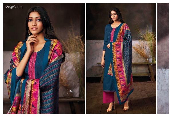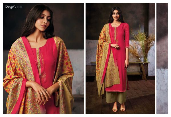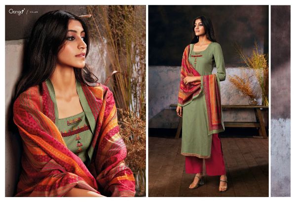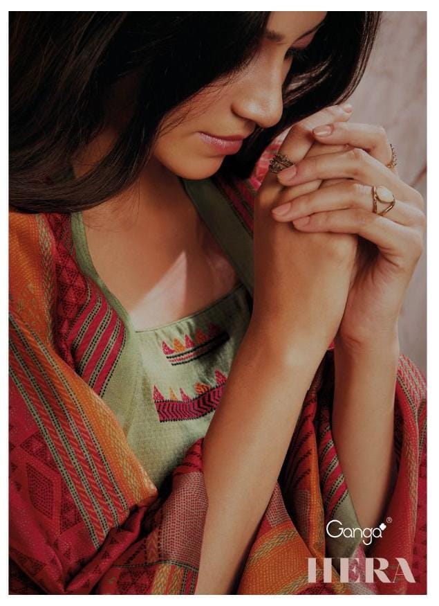 Ganga Presents Hera C0458-c0463 Series Cotton Satin Printed With Embroidery Salwar Kameez Collection