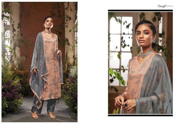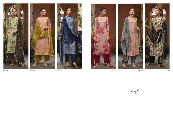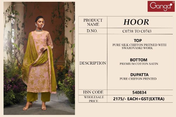 Ganga Presents Hoor C0738 - C0743 Series Pure Silk Chiffon Printed With Swarovski Work Fancy Salwar Suit Collection