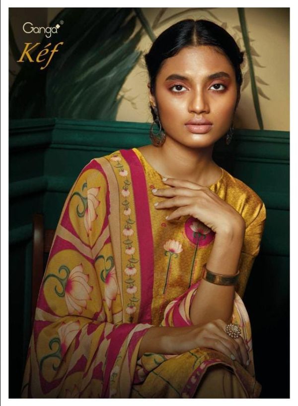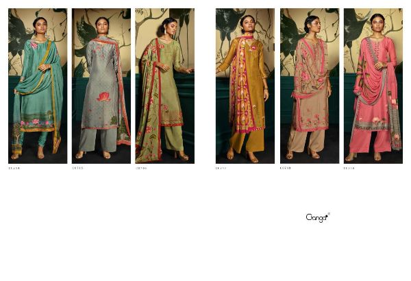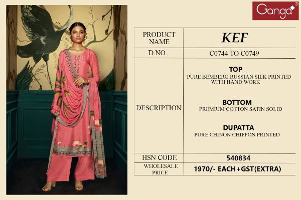 Ganga Presents Kef C0744 - C0749 Series Pure Bumbring Russian Silk Printed And Hand Work Fancy Salwar Kameez Collection