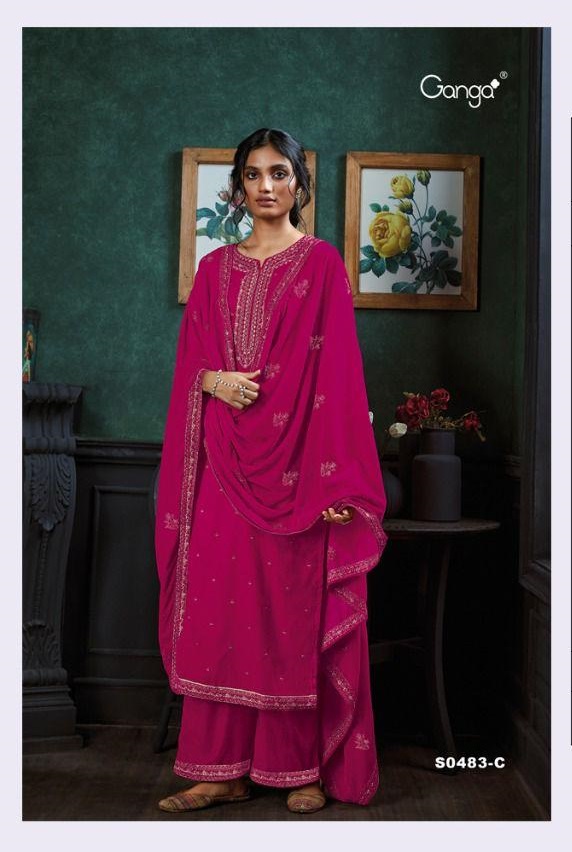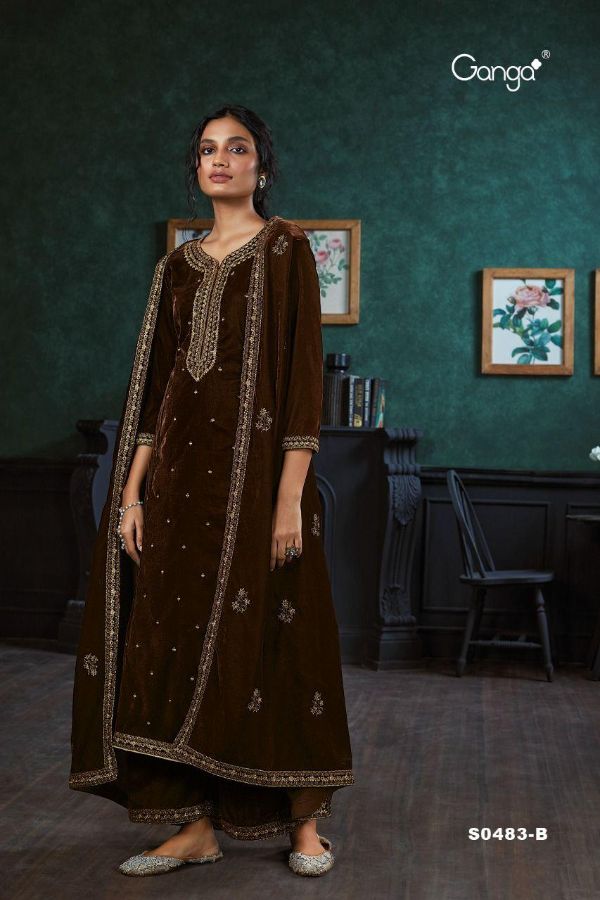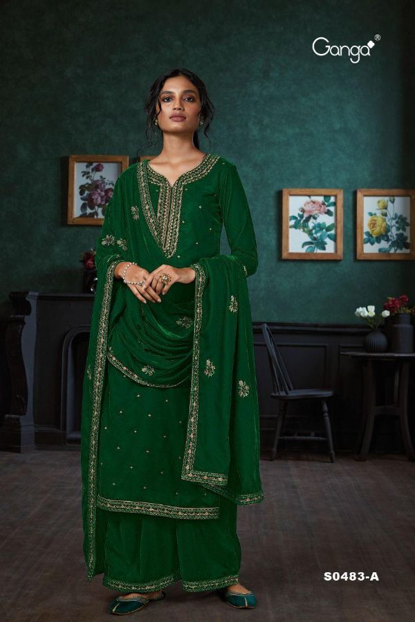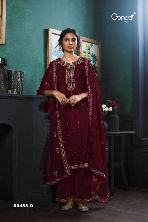 Ganga Presents Zeal 483 S0483a - S0483d Series Premium Velvet With Solid With Embroidery And Hand Work Fancy Salwar Suit Collection