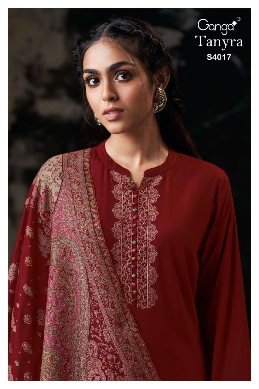 Catalogue: | GANGA TANYRA S4017 PREMIUM PURE PASHMINA SUIT WITH EMBROIDERY |
