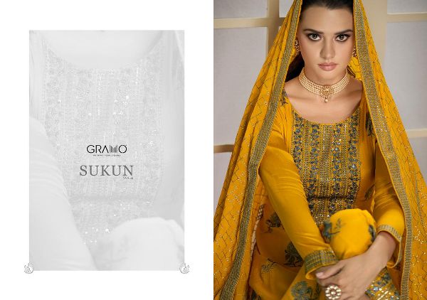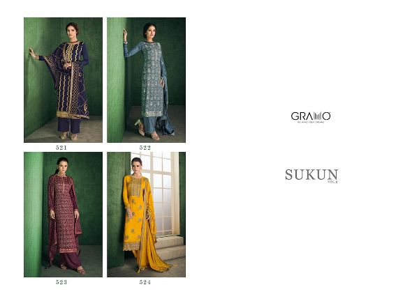 Garmo Presents Sukun Vol-2 521,522,523,524 Series Heavy Chinon With Viscose With Embroidery With Heavy Handwork Salwar Kameez Collection#2076