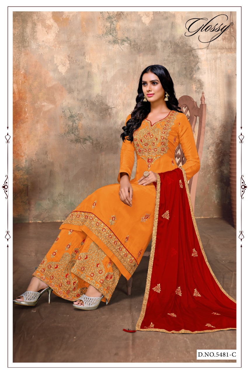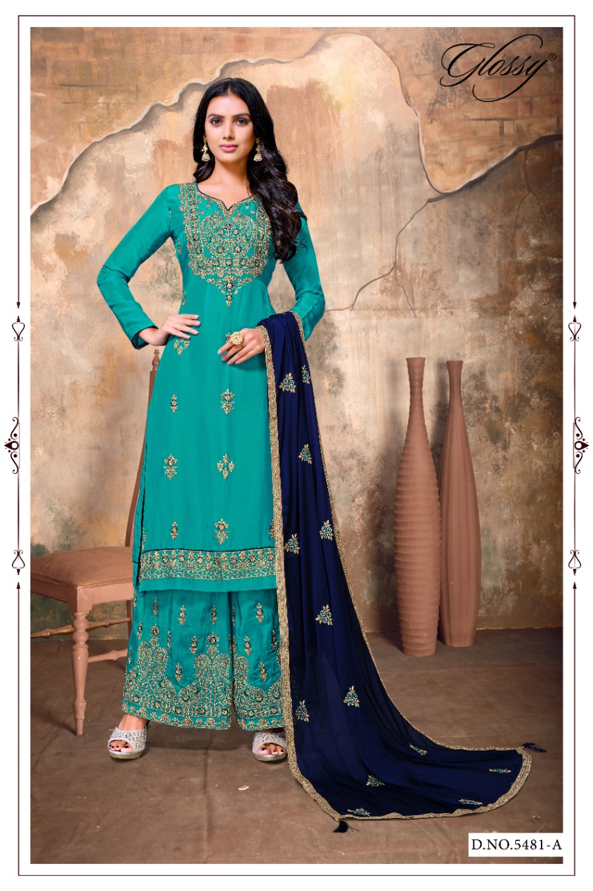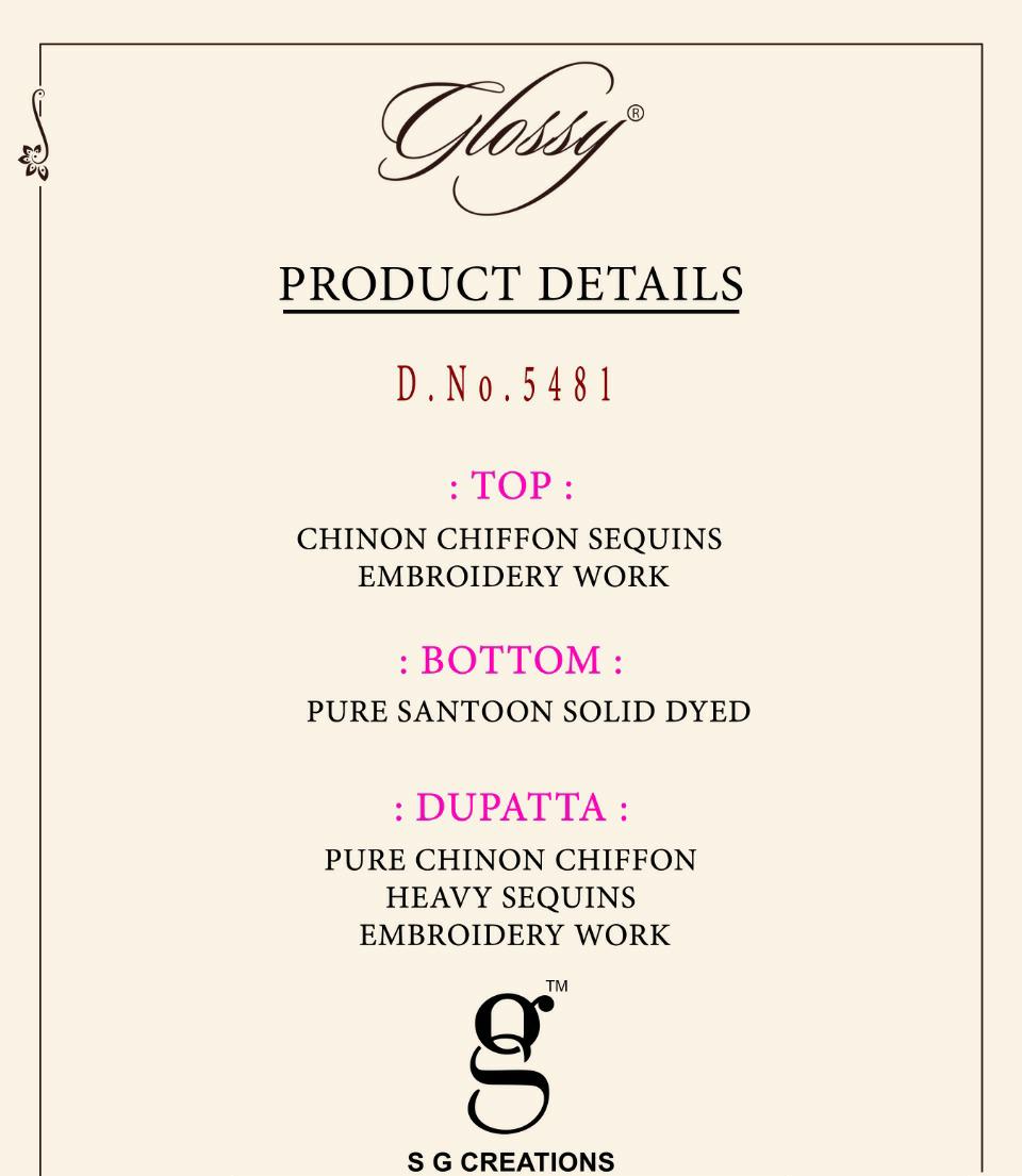 Glossy Presents 5481 Colours 5481a - 5481d Series Chinon Chiffon Sequence Embroidery Work Fancy Event Wear Salwar Suit Collection