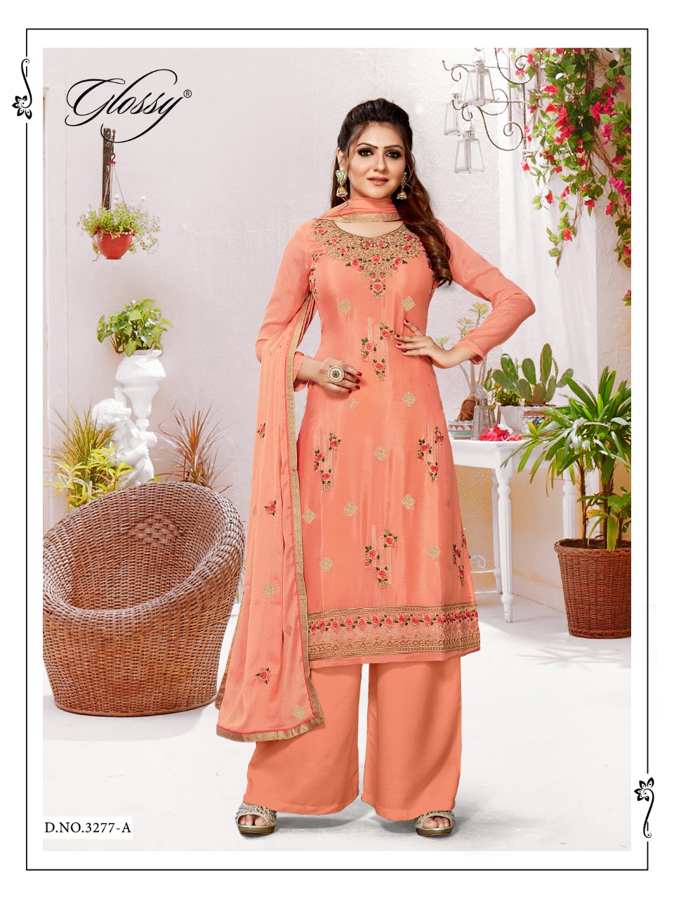 Glossy Presents Nargis 3277a - 3277d Series Pure Viscose With Chinon Embroidery Work Fancy Event Wear Salwar Suit Collection