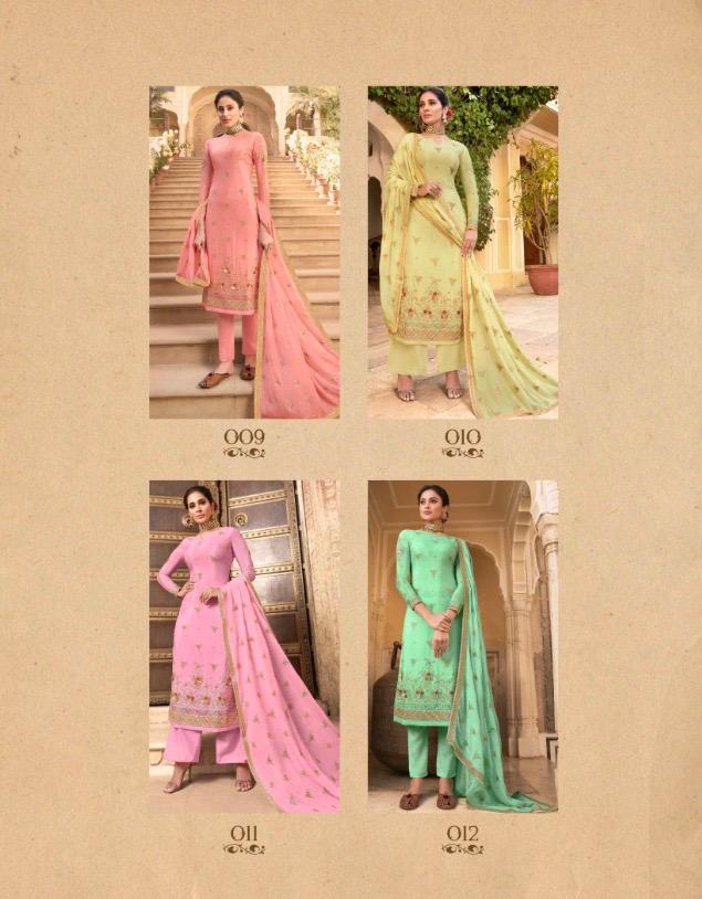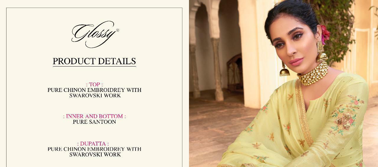 Glossy Presents Suhani 009 - 012 Series Pure Chnion Embroidery Work Swarovski Work Fancy Event Wear Salwar Suit Collection