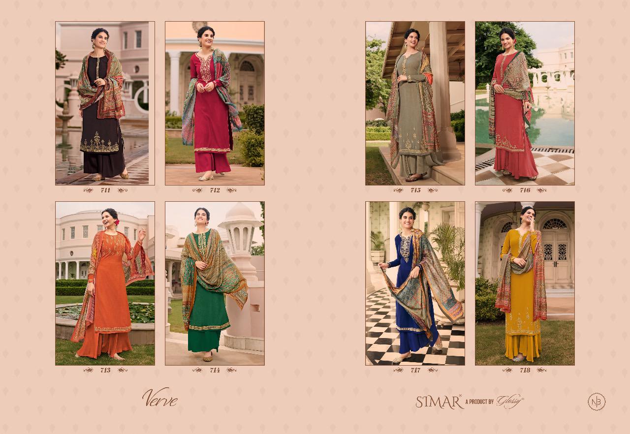 Glossy Presents Verve 711 - 718 Series Pure Tussar Silk With Embroidery Work Fancy Casual Wear Salwar Suit Collection