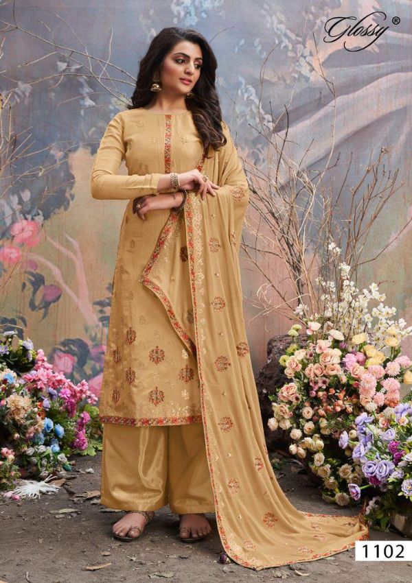 Glossy Presents Zarina Dn-1102 Viscose Upada With Embroidrey Work Salwar Suit Collection