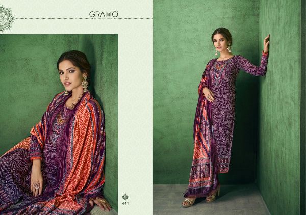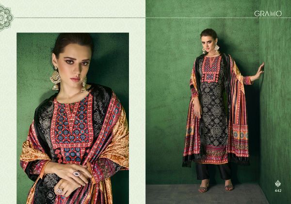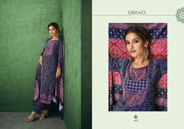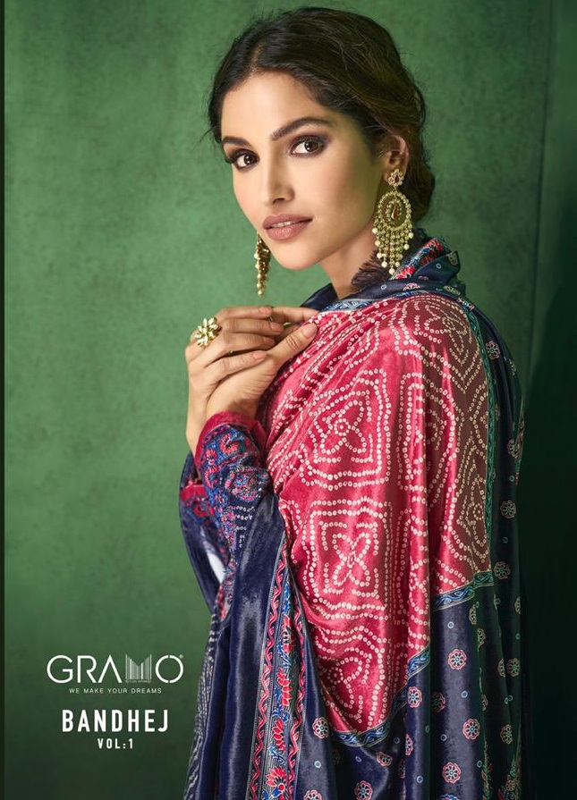 Gramo Presents Bandhej Vol-1 441-444 Series Pure Velvet With Digital Print With Additional Handwork Salwar Suit Collection