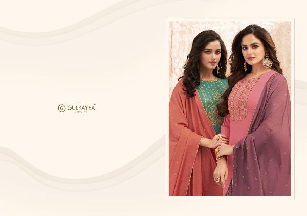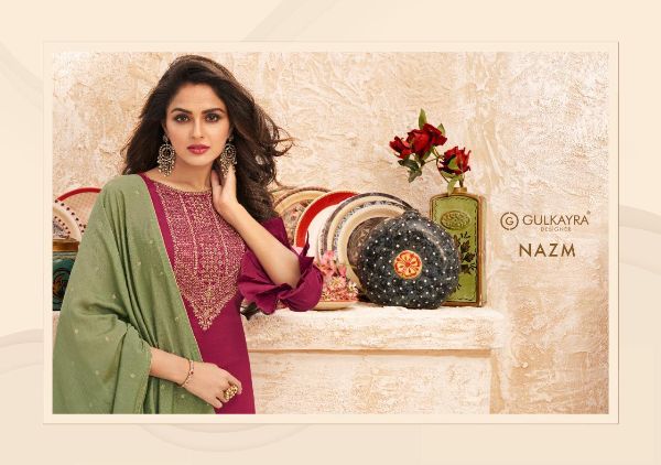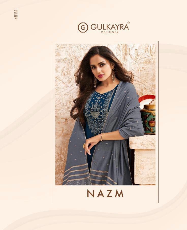 Gulkayra Designer Presents Nazm 7021 - 7026 Series Jaam Silk With Heavy Embroidery Work Fancy Salwar Suit Collection