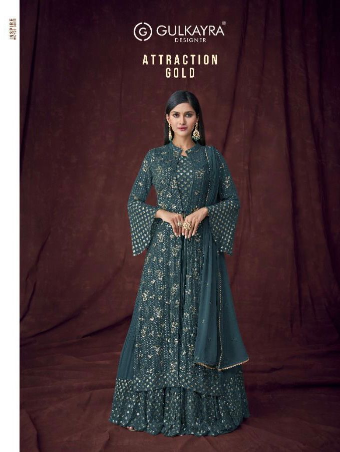 Gulkayra Presents Attraction Gold 7106a - 7106e Series Designer Party Wear Indian Pakistani Anarkali Salwar Suit At Wholesale Price
