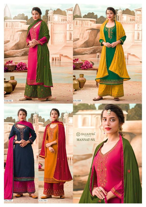 Gulkayra Presents Mannat Nx 1081-1086 Series Jam Silk With Heavy Embroidery With Diamond Salwar Kameez Collection