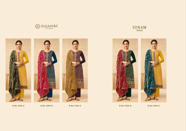 Gulkayra Presents Sonam Gold 7009a,7009b,7009c,7009d,7009e Series Pure Georgette Salwar Suit Collection