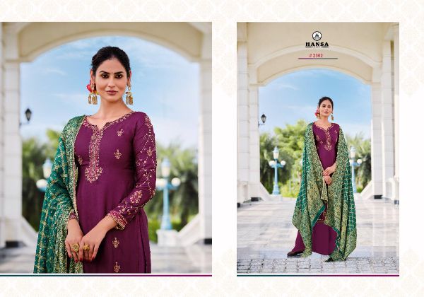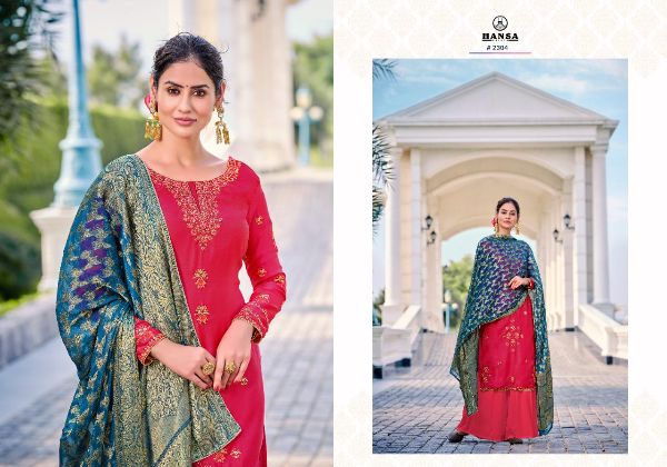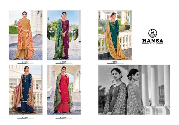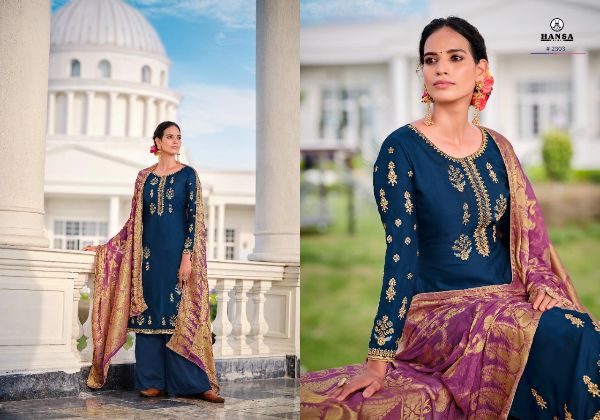 Hansa Presents Banaras 2301-2305 Series Satin Georgette With Work Salwar Suit Collection