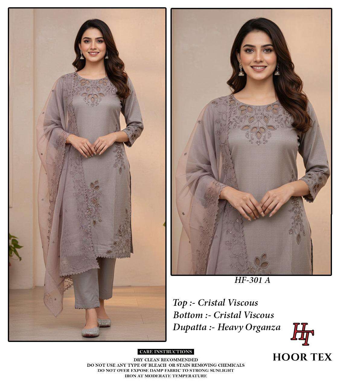 | Catalogue: | Hoor Tex HF 301 A To D Cristal Viscous Pakistani Style Suit |