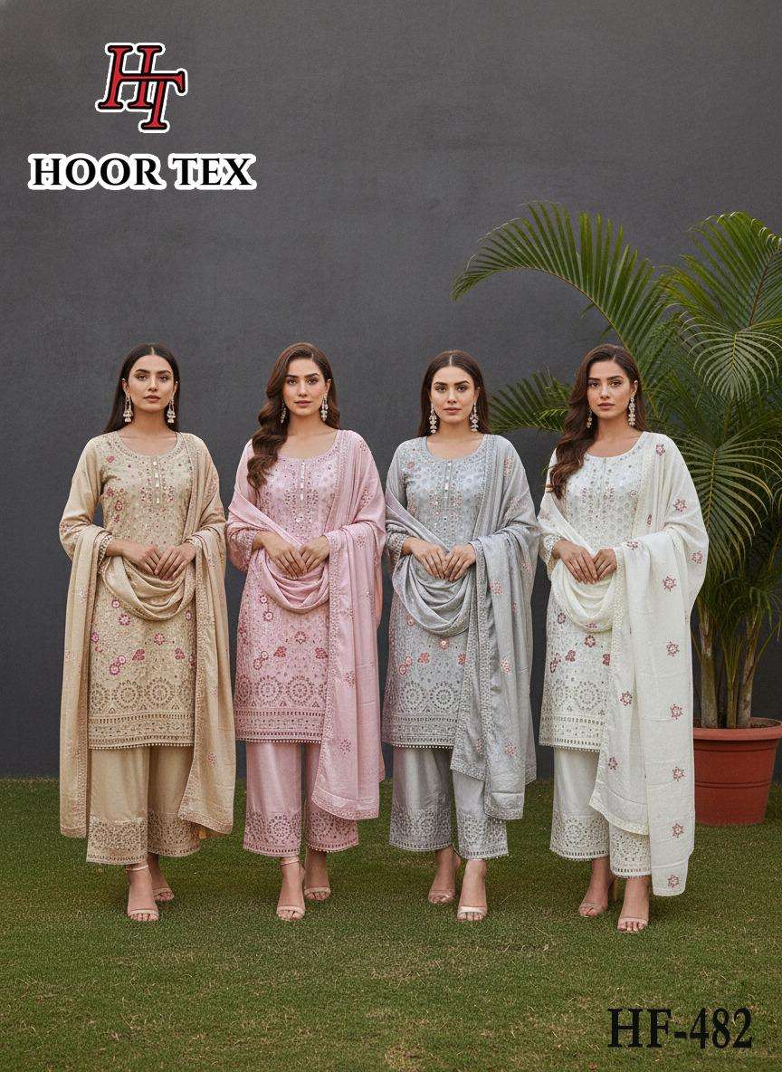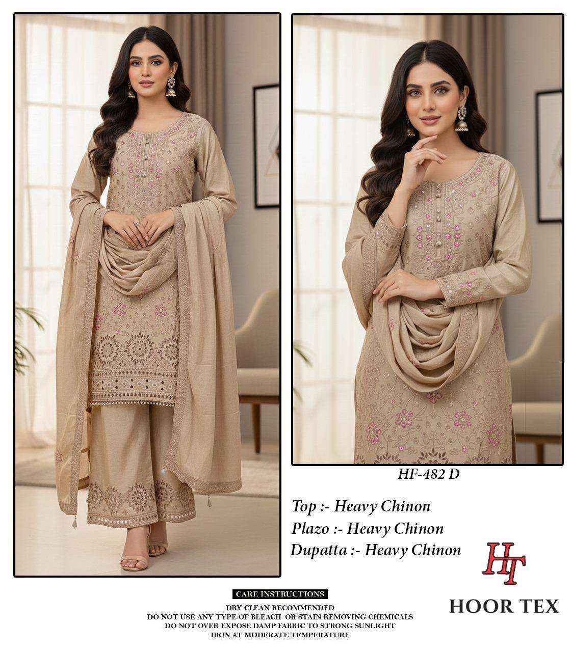 | Catalogue: | Hoor Tex HF 482 A To D Heavy Chinon Pakistani Salwar Suit |