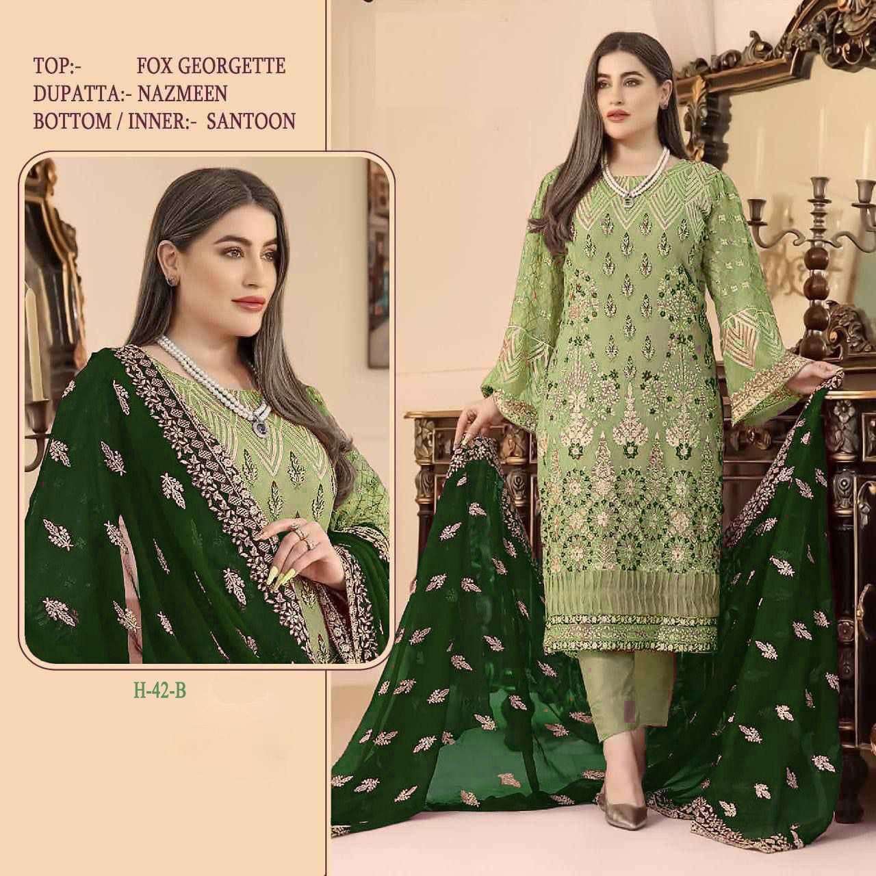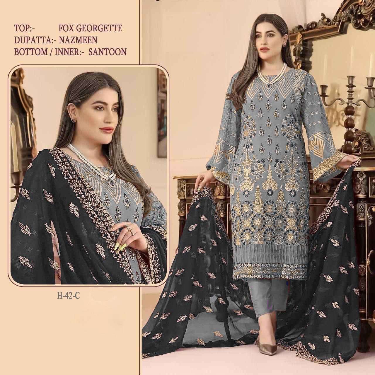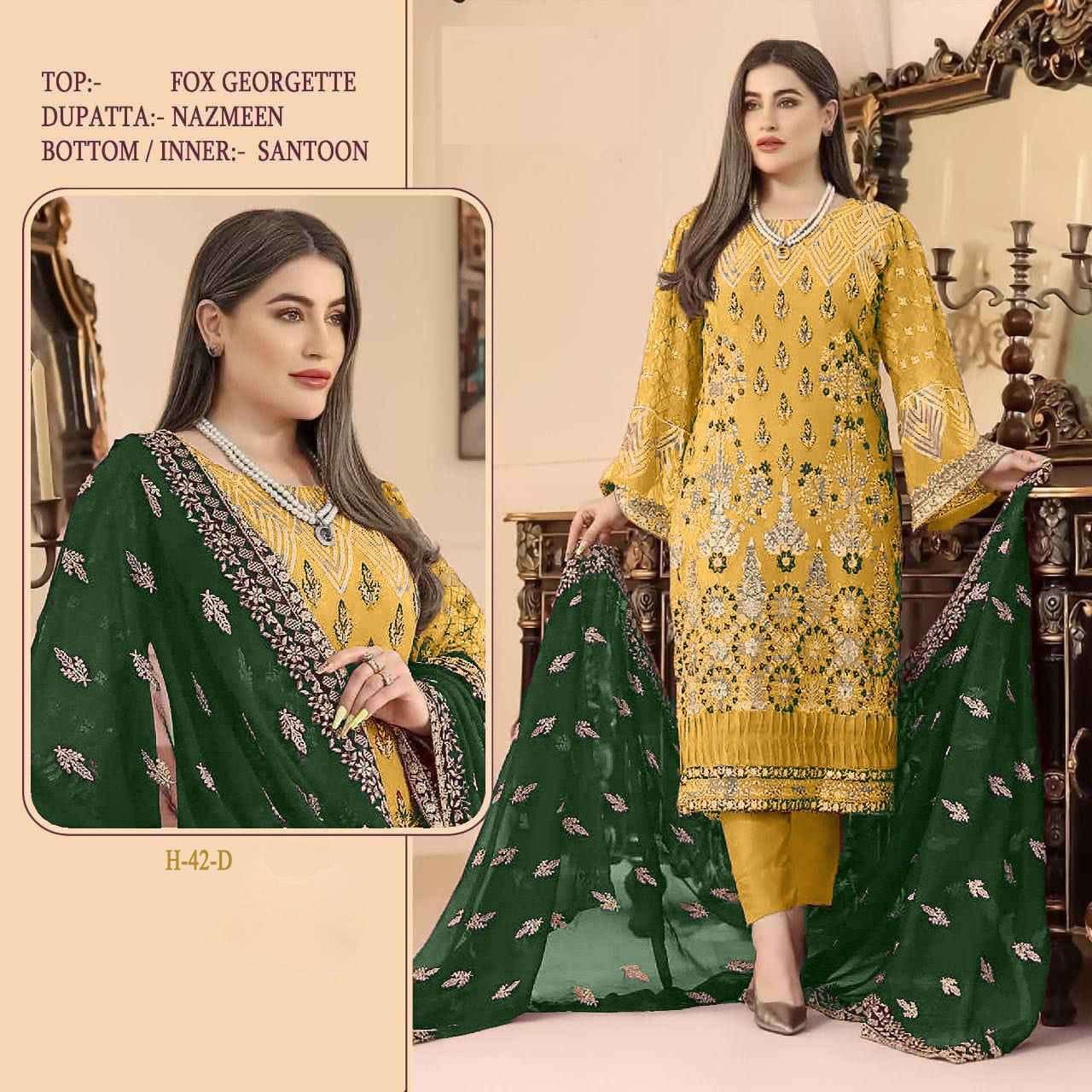 HOOR TEX PRESENTS H-42 DNO H42 - H42E SERIES INDIAN WOMEN DESIGNER HEAVY PAKISTANI FAUX GEORGETTE STRAIGHT PANT SALWAR KAMEEZ SUIT WEDDING FESTIVE PARTY WEAR COLLECTION 7234