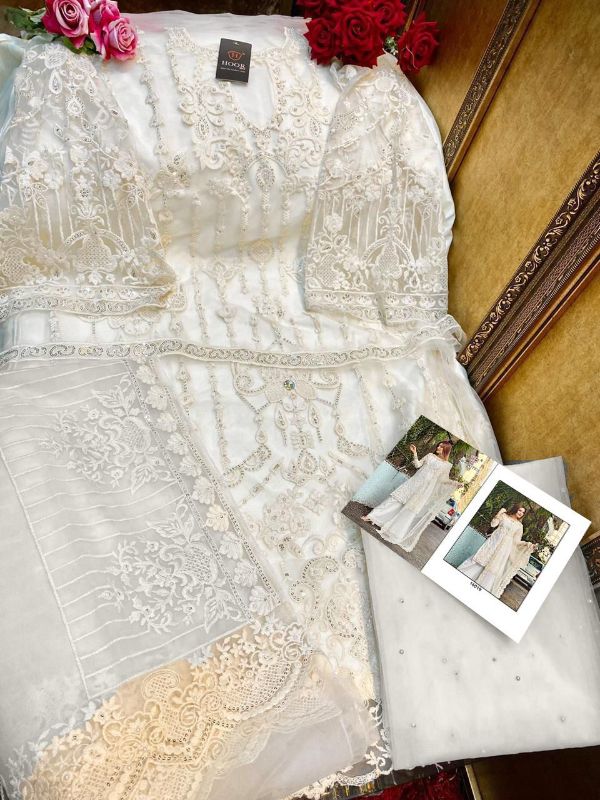Hoor Tex Presents Hoor Tex 16019 Heavy Net With Embroidery Stone Work Paakistani Collection#1689