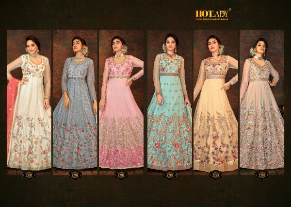 Hotlady Presents ??????? Vol-22 7791-7796 Series Butterfly Net With Heavy Embroidery Work Gown Collection
