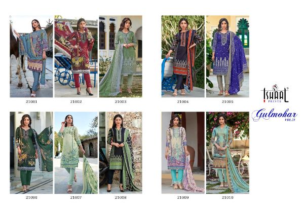 Ishaal Prints Presents Gulmohar Vol-21 21001-21010 Pure Lawn Cotton Salwar Kameez Collection