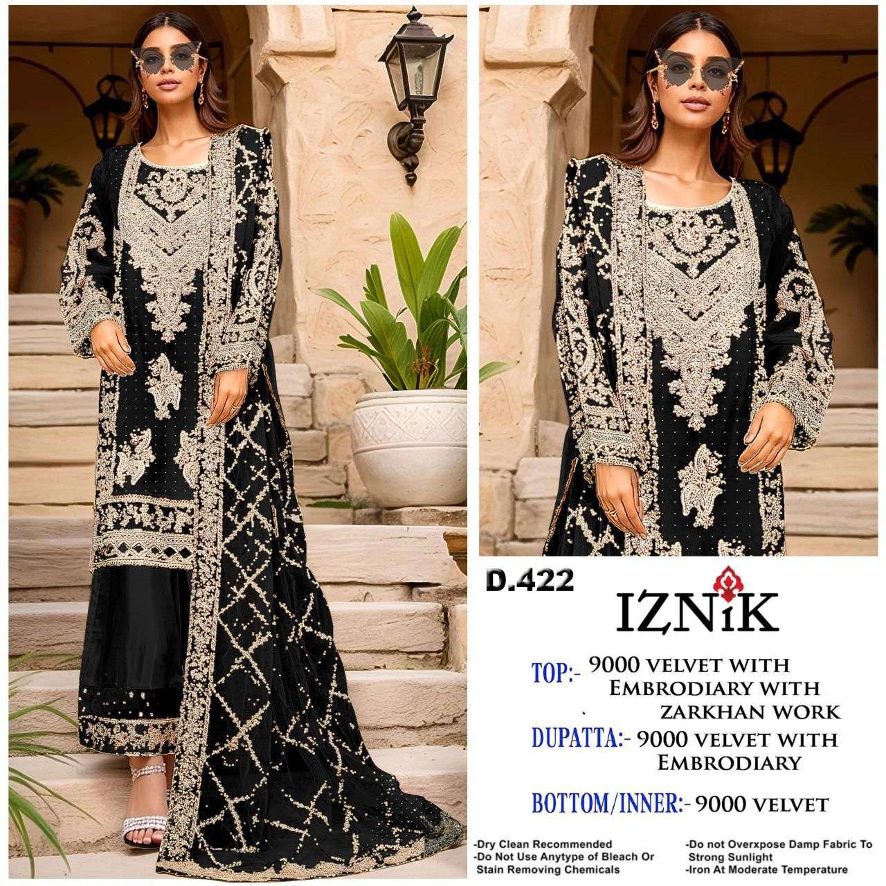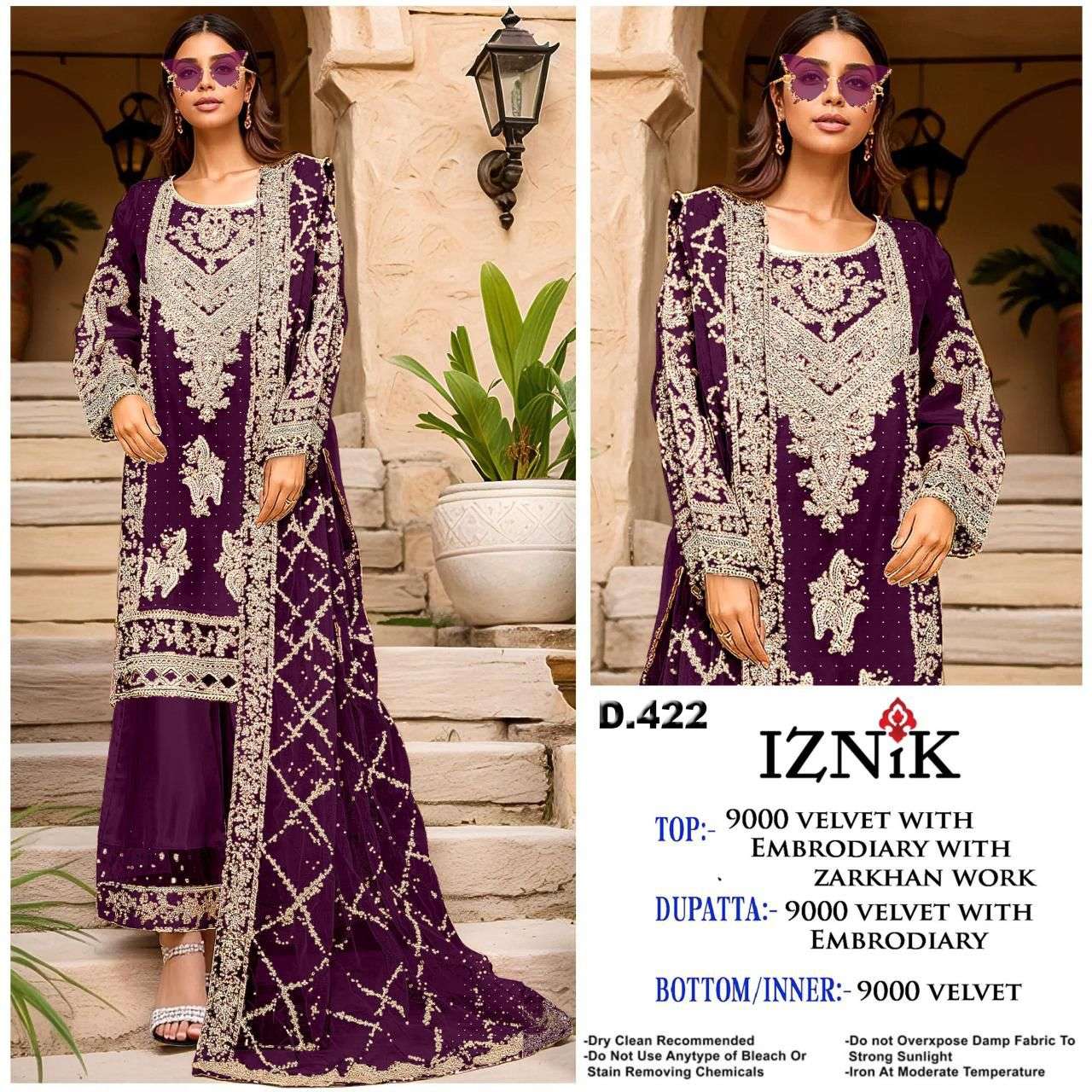 | Catalogue: | IZNIK FAB A 422 9000 Velvet Pakistani Suit with Embroidery & Zarkan Work |