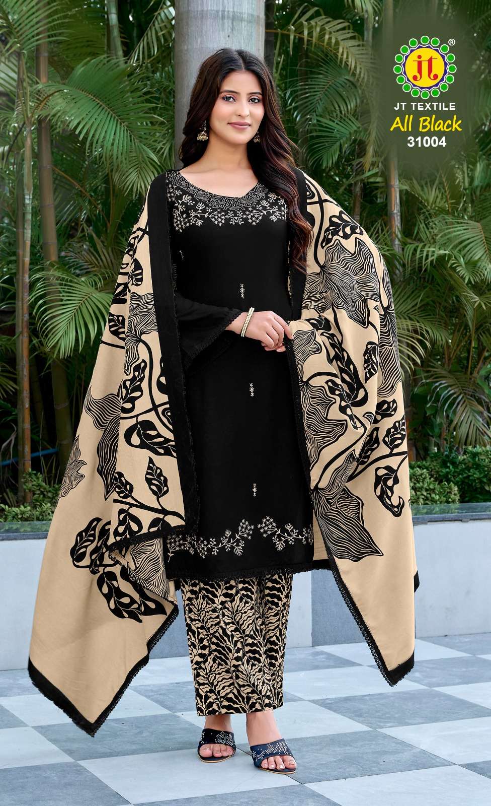 Catalogue: | JAMATMAL TILOKCHAND All Black 3️1 Rayon Suit With Sequence & Embroidery |